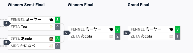 - 勝者側決勝はミーヤーがあcolaに3-2で勝利